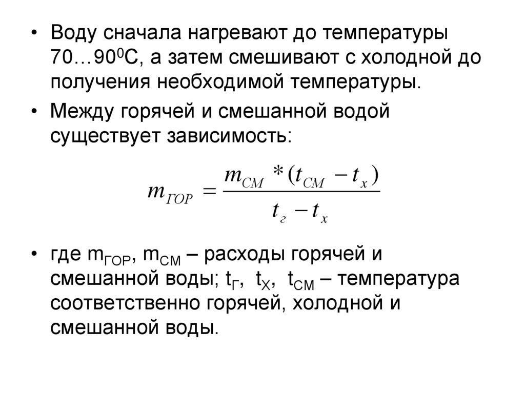 • Воду сначала нагревают до температуры70…900С, а затем смешивают с холодной до