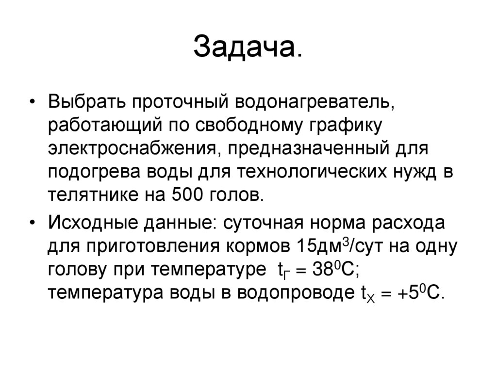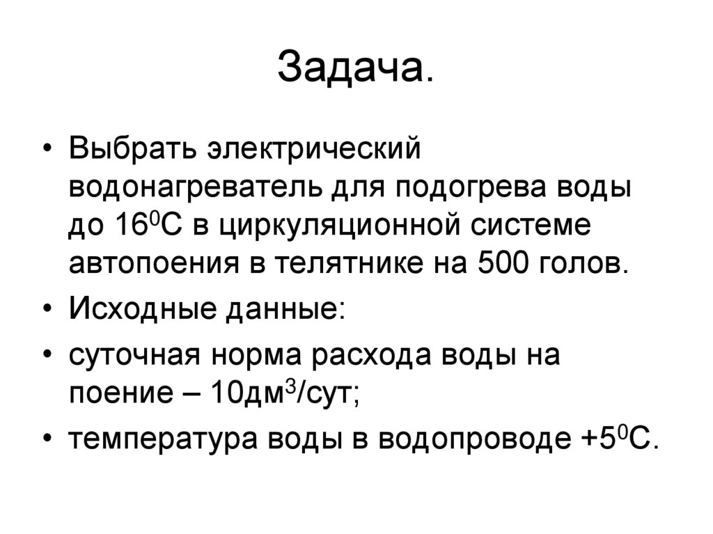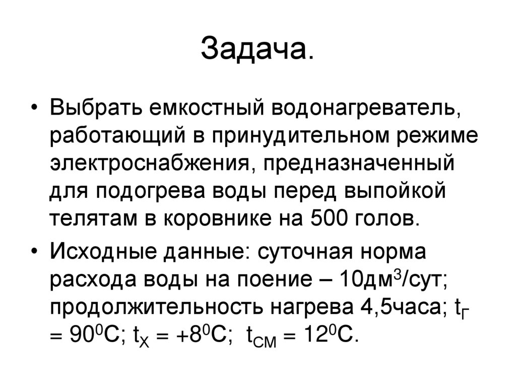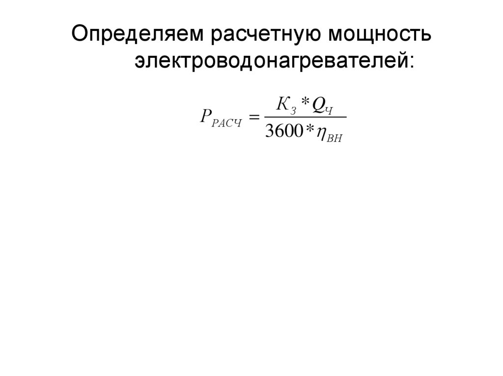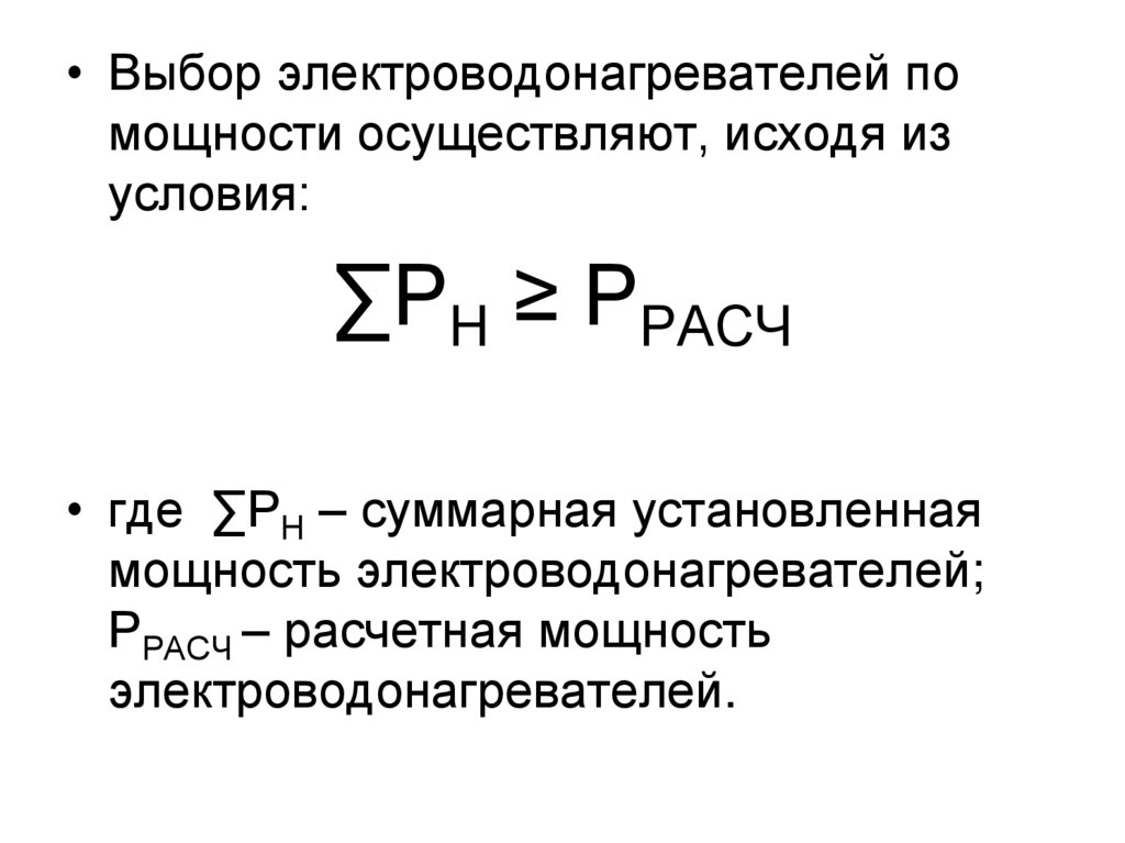 • Выбор электроводонагревателей помощности осуществляют, исходя из