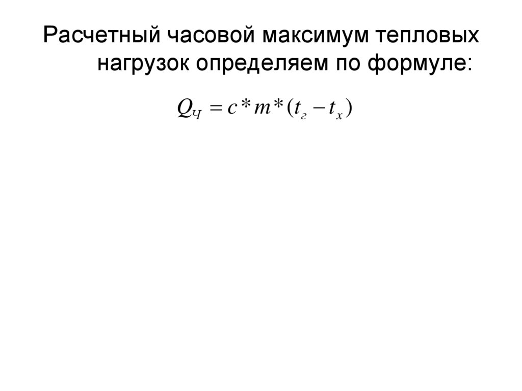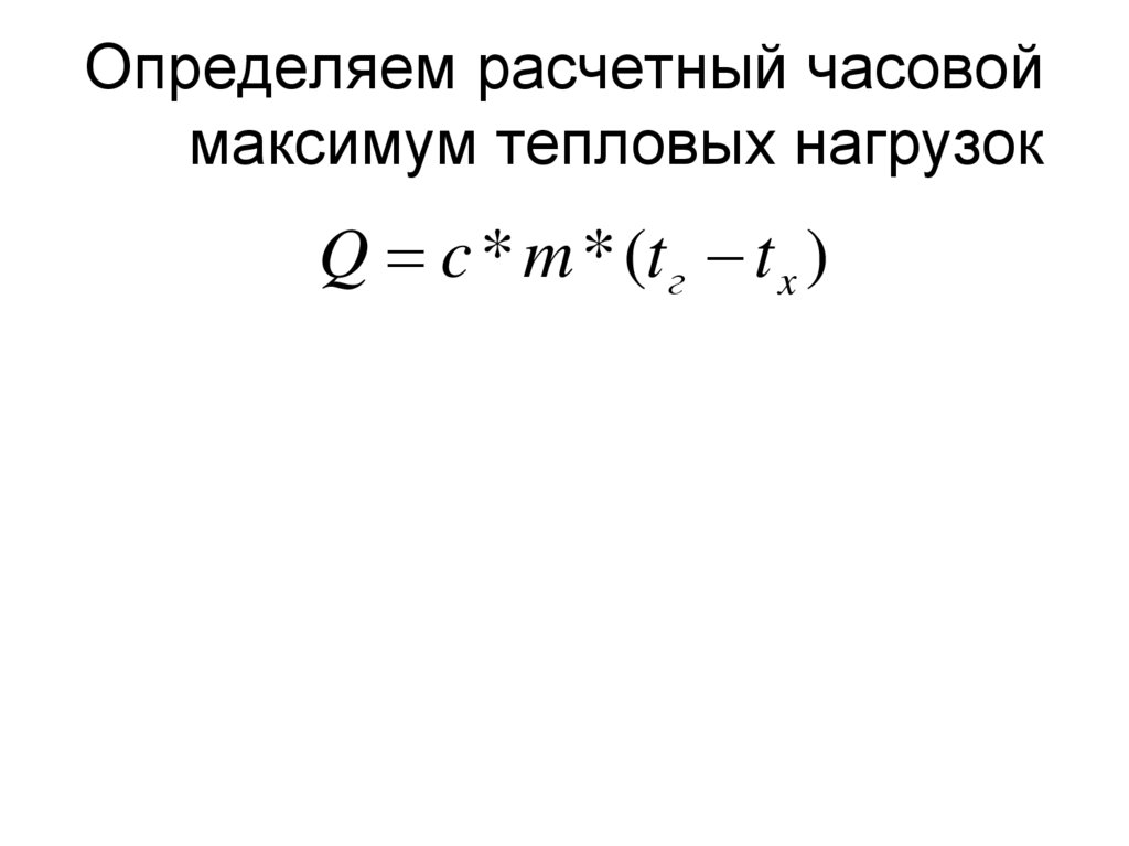Расчетный часовой максимум тепловыхнагрузок определяем по формуле: