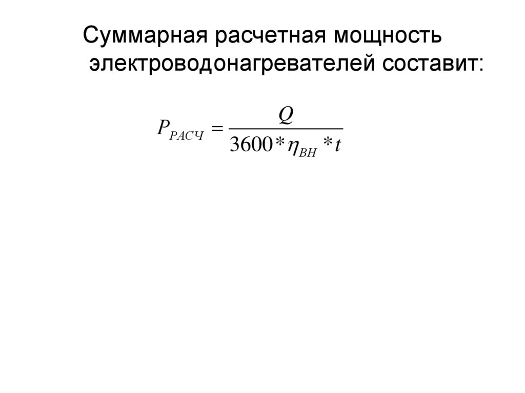 Суммарная расчетная мощностьэлектроводонагревателей составит: