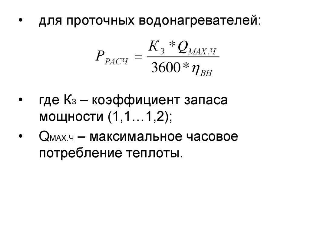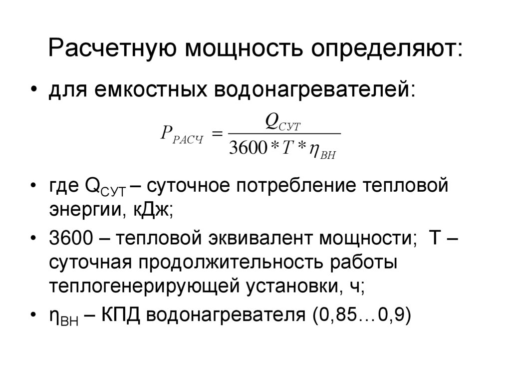 Расчетную мощность определяют:• для емкостных водонагревателей: