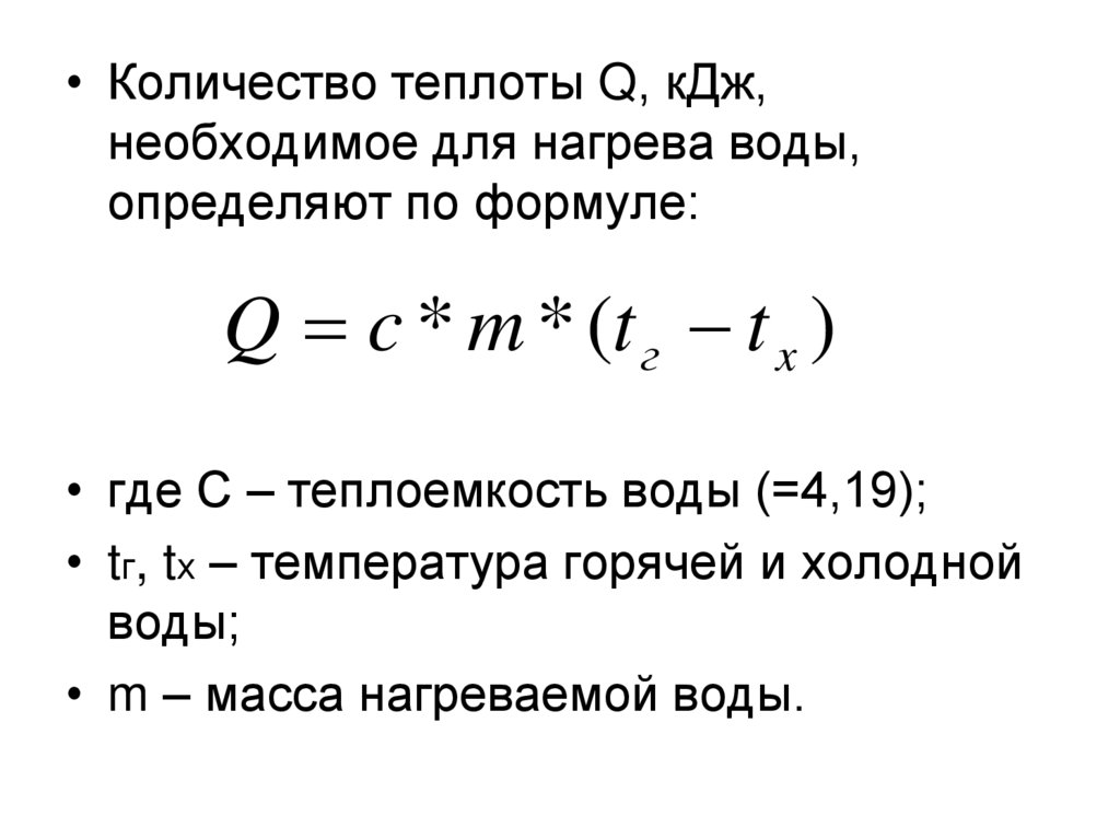 • Количество теплоты Q, кДж,необходимое для нагрева воды,