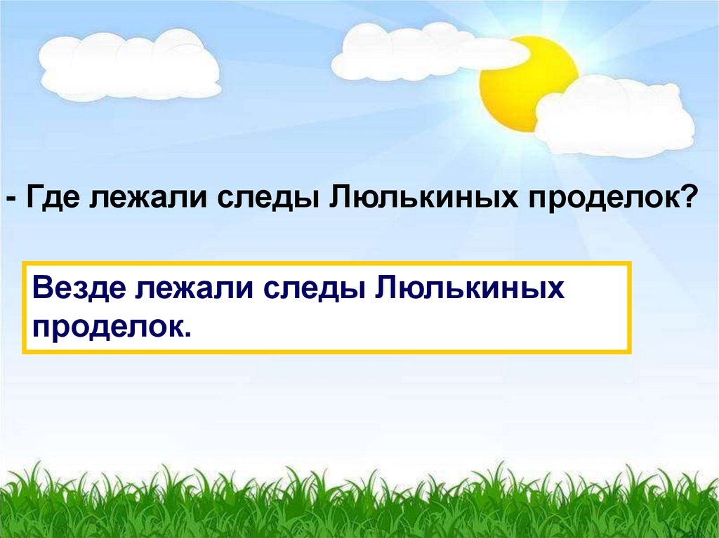 - Где лежали следы Люлькиных проделок?Везде лежали следы Люлькиных