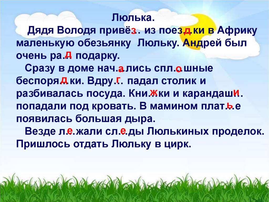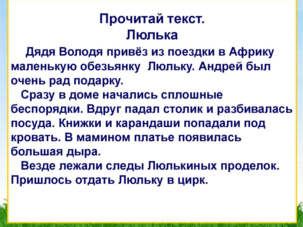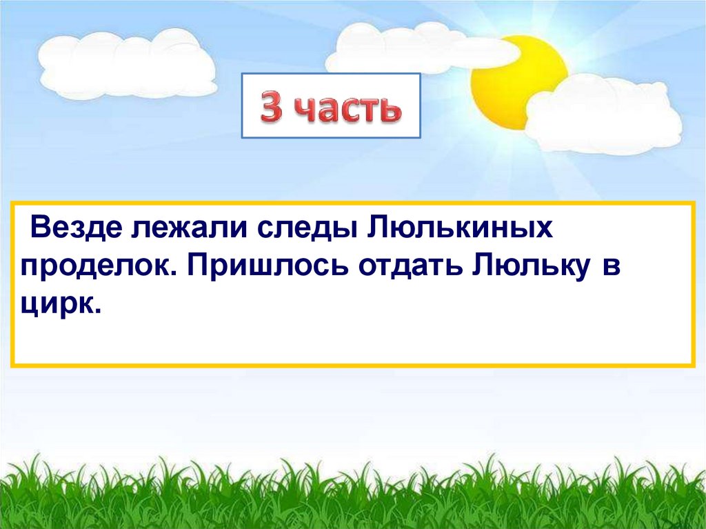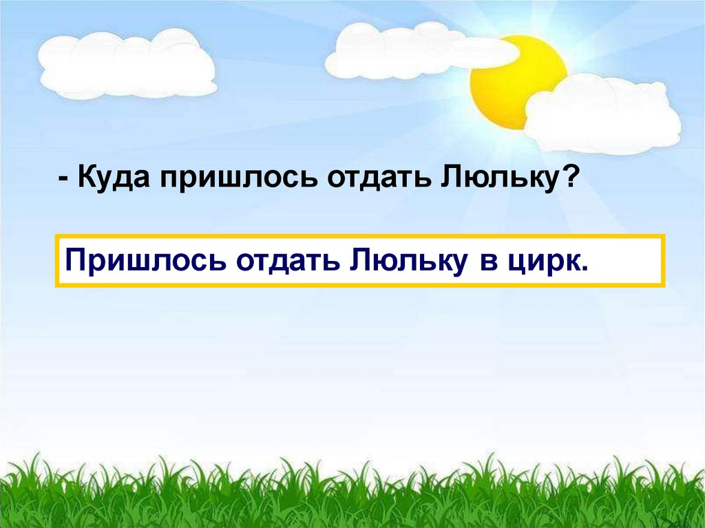 - Куда пришлось отдать Люльку?Пришлось отдать Люльку в цирк.