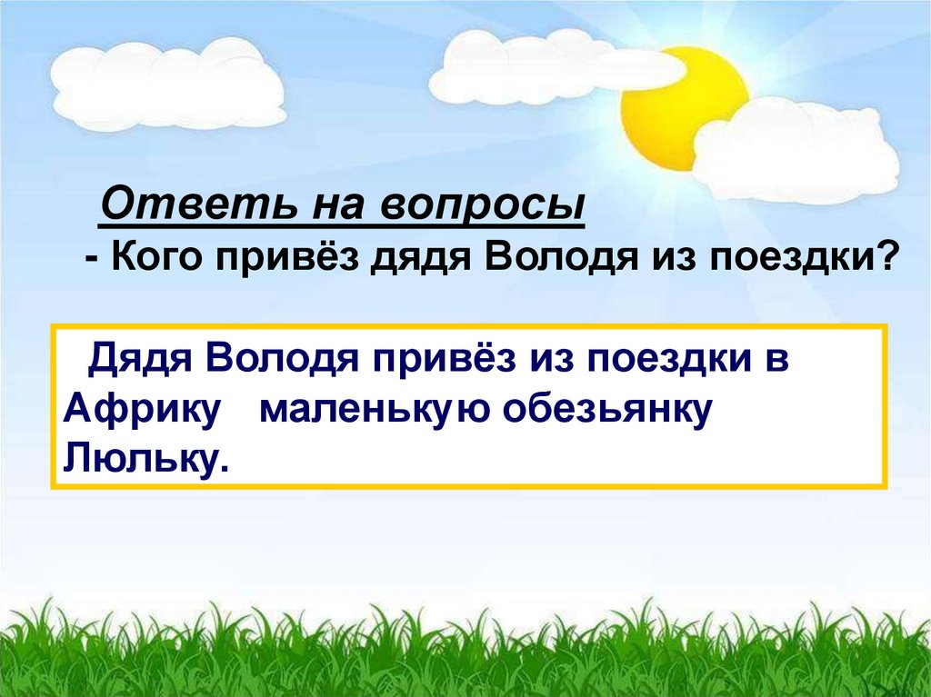 Ответь на вопросы- Кого привёз дядя Володя из поездки?