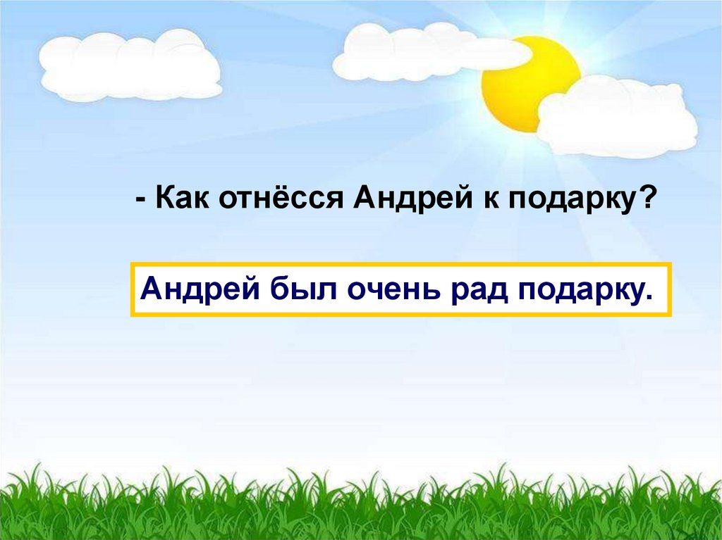 - Как отнёсся Андрей к подарку?Андрей был очень рад подарку.