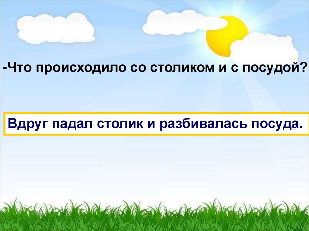 -Что происходило со столиком и с посудой?Вдруг падал столик и разбивалась посуда.