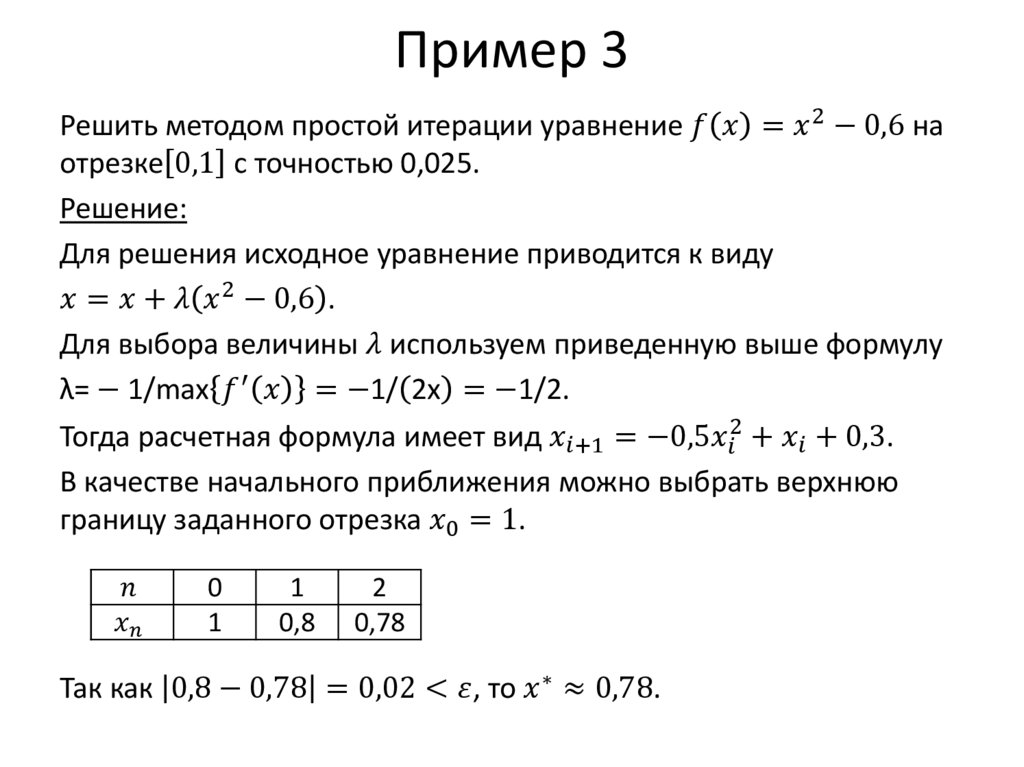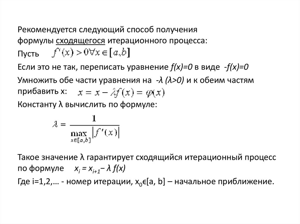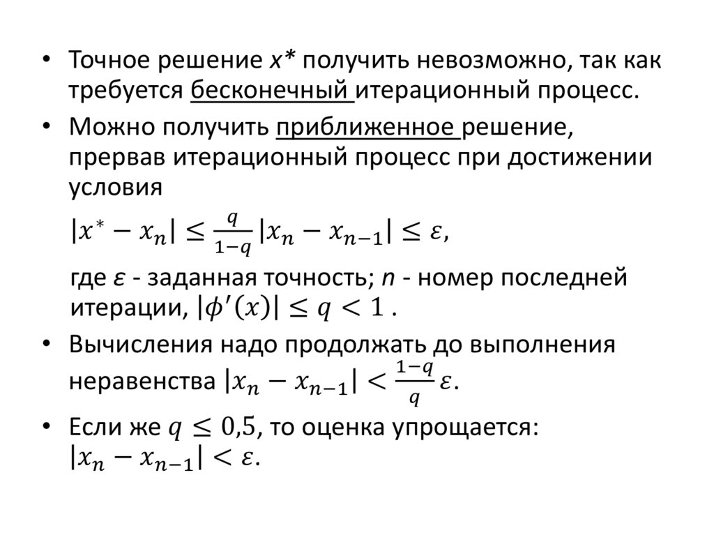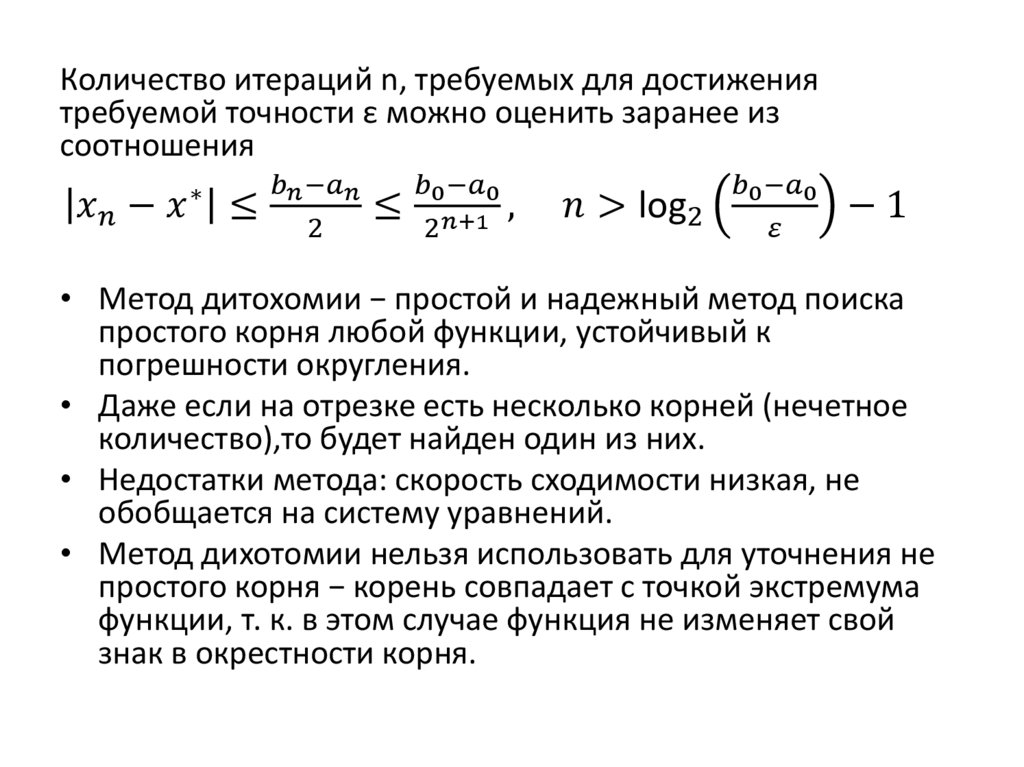 Количество итераций n, требуемых для достижениятребуемой точности ε можно оценить заранее из