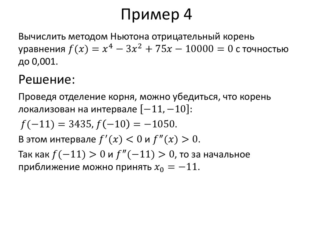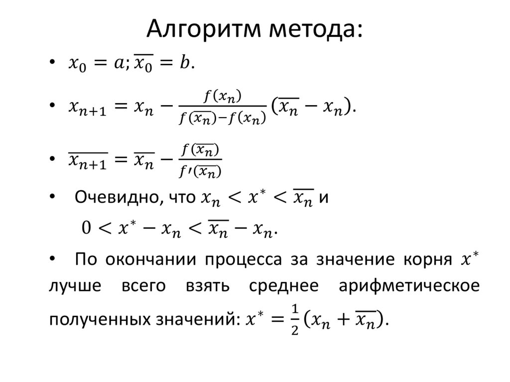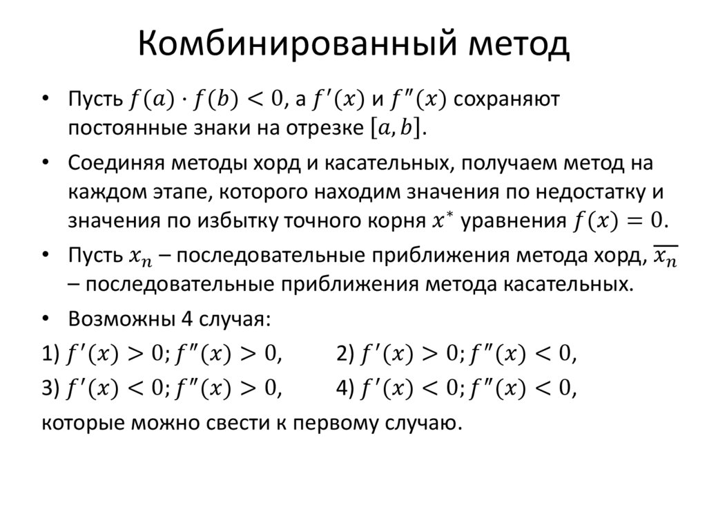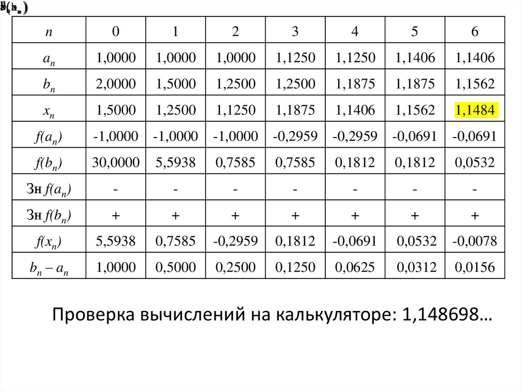 3. Проверить условие завершения вычислений : b-a ≤ ε ∩ |f(x)| ≤ ε.