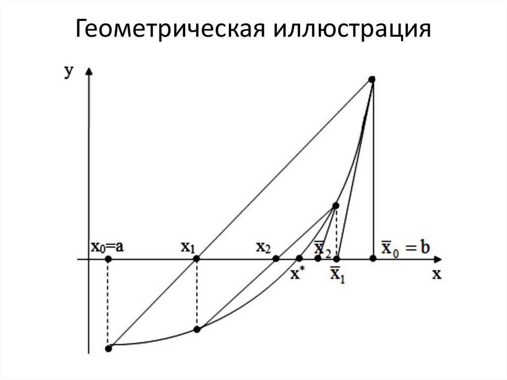 Если f(a) ·f(x)>0 => xϵ [x, b] => a=x, иначе xϵ[a, x] => b=x