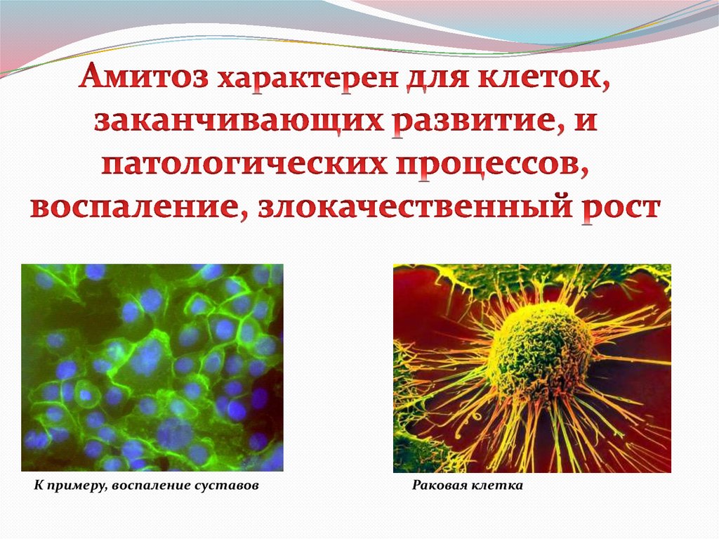 - не образуется веретено деления;- ядро делится перетяжкой;
