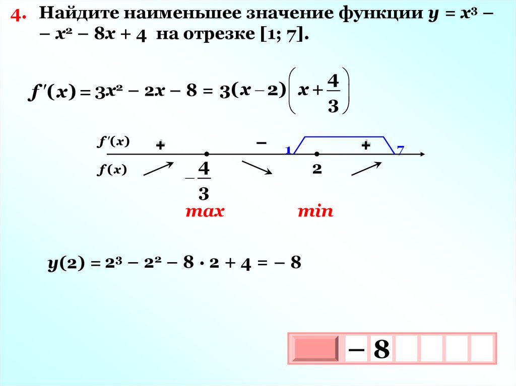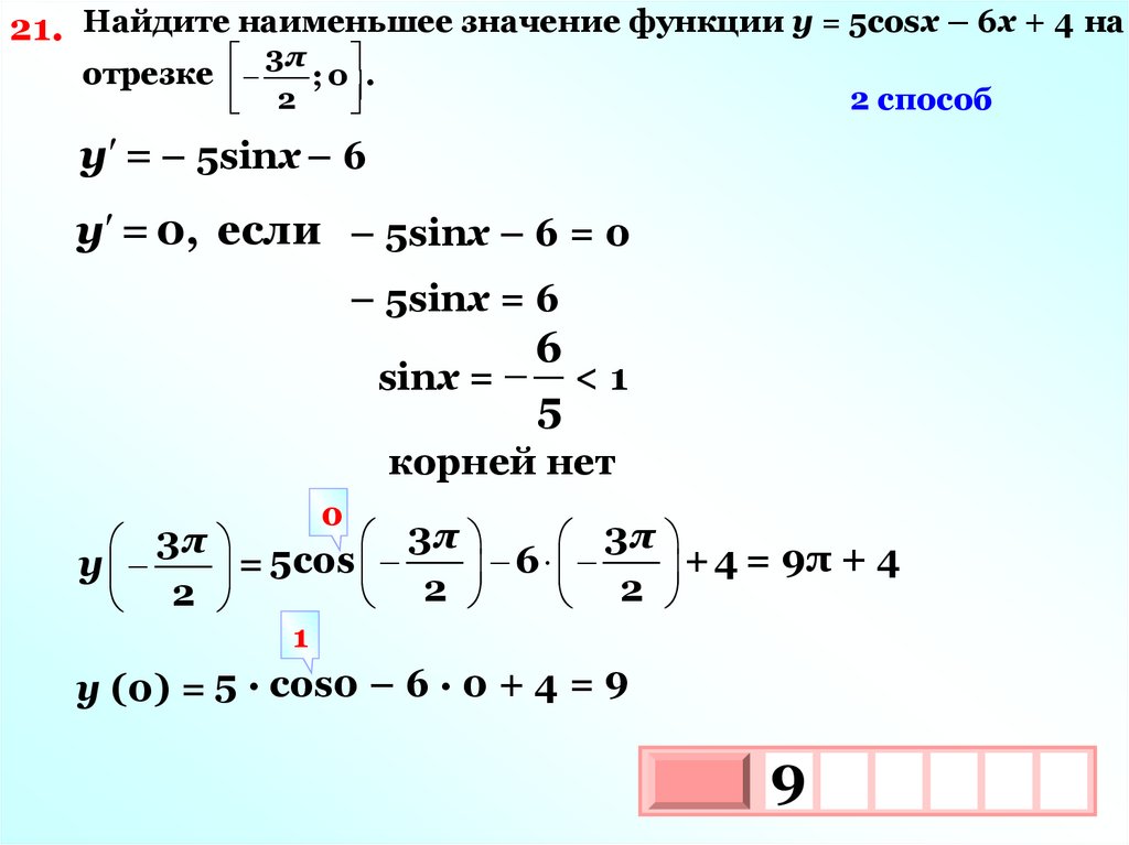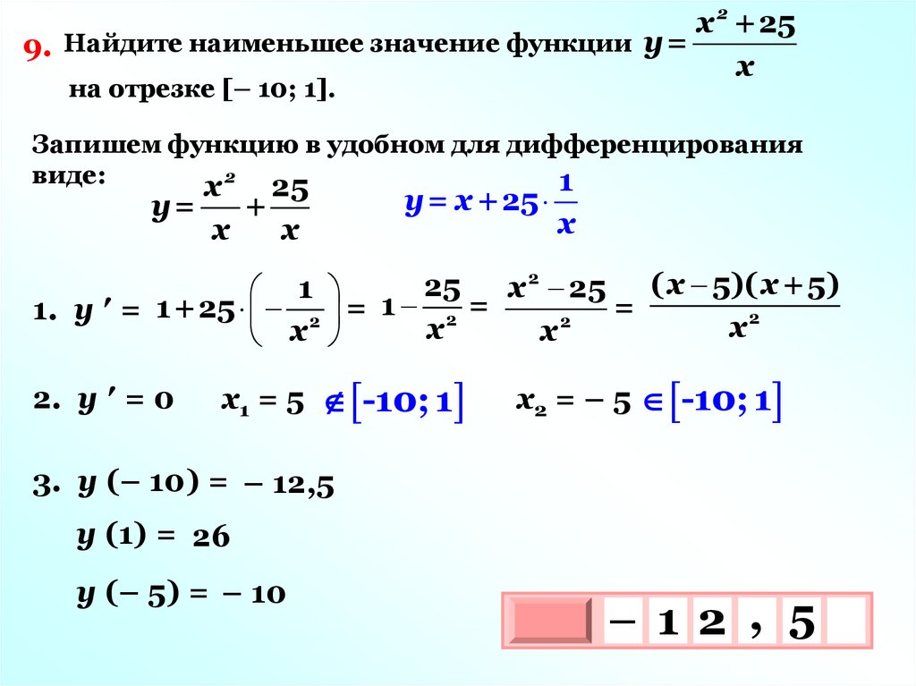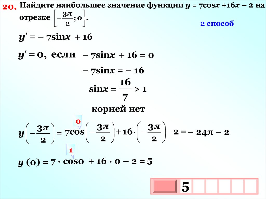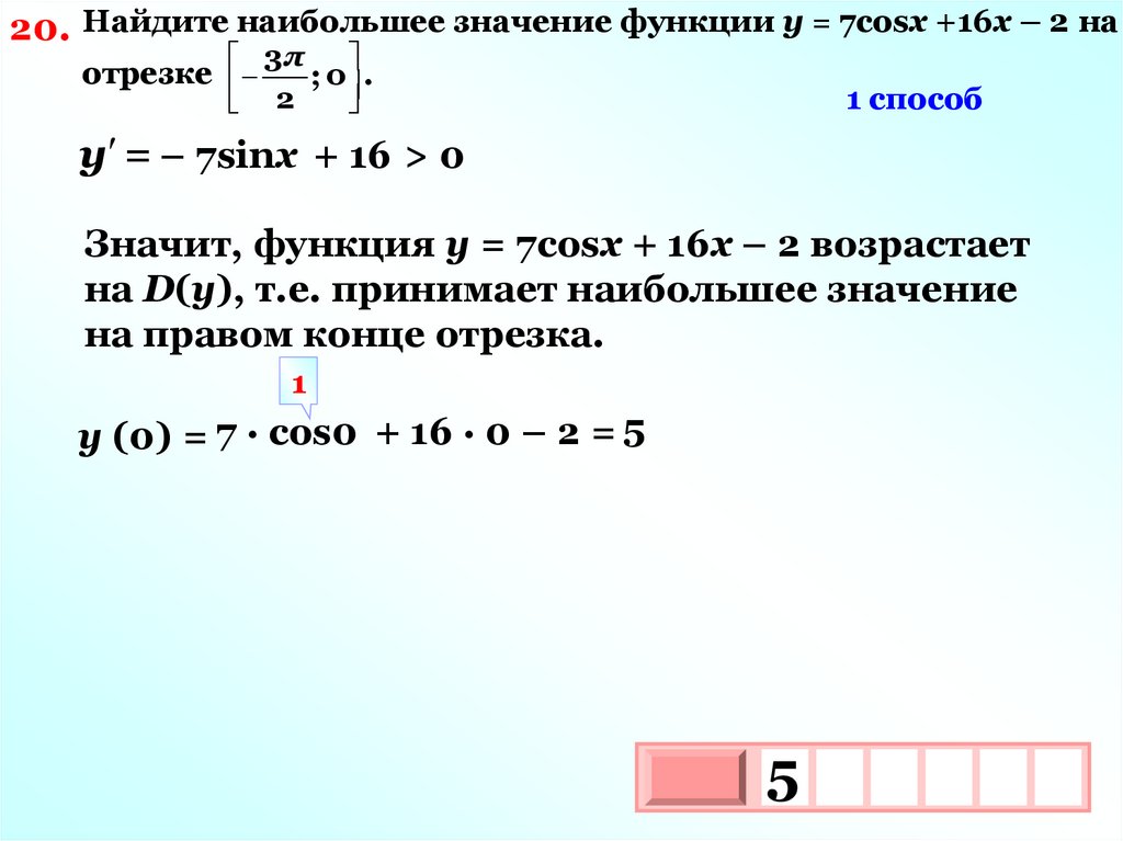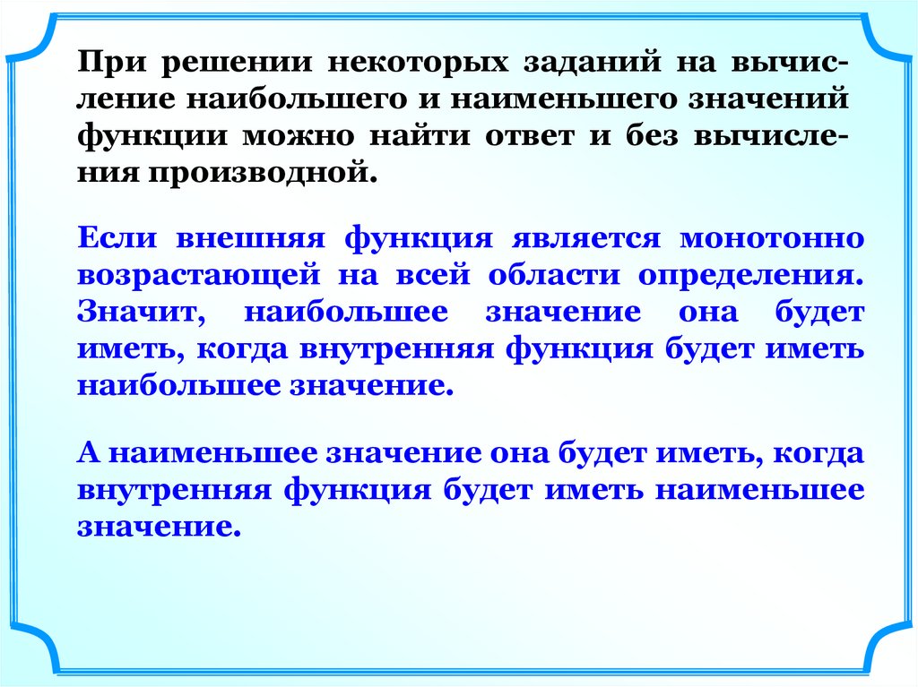 При решении некоторых заданий на вычисление наибольшего и наименьшего значенийфункции можно найти ответ и без вычисления производной.