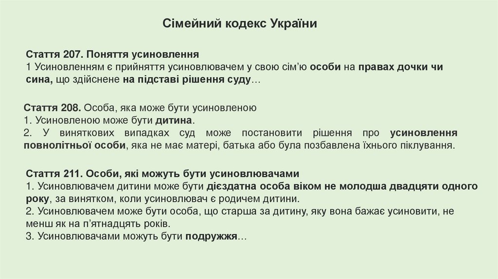 Сімейний кодекс УкраїниСтаття 207. Поняття усиновлення