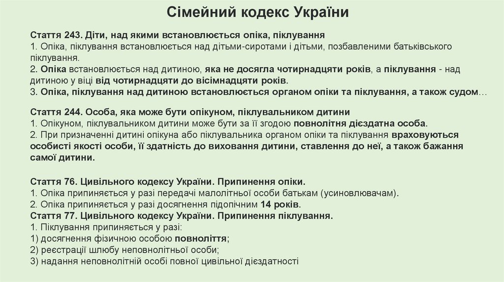 1. Опіка, піклування встановлюється над дітьми-сиротами і дітьми, позбавленими батьківського