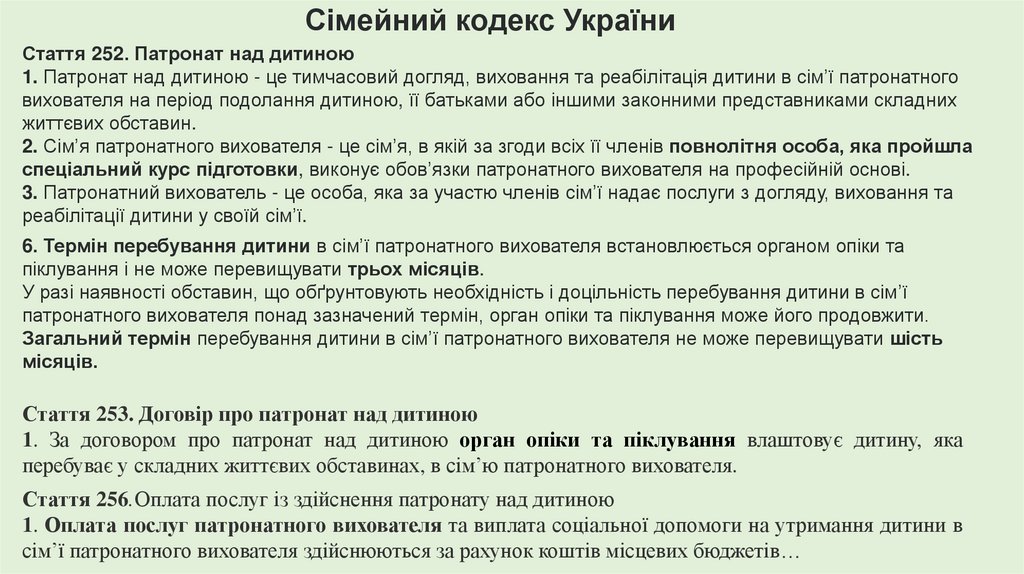 Сімейний кодекс УкраїниСтаття 252. Патронат над дитиною