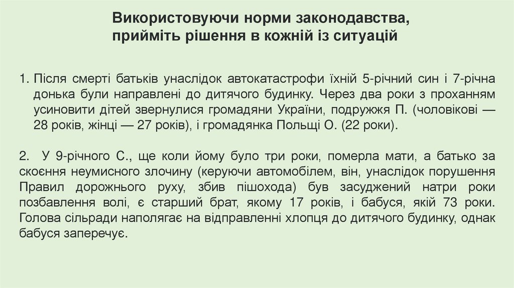 Використовуючи норми законодавства,прийміть рішення в кожній із ситуацій
