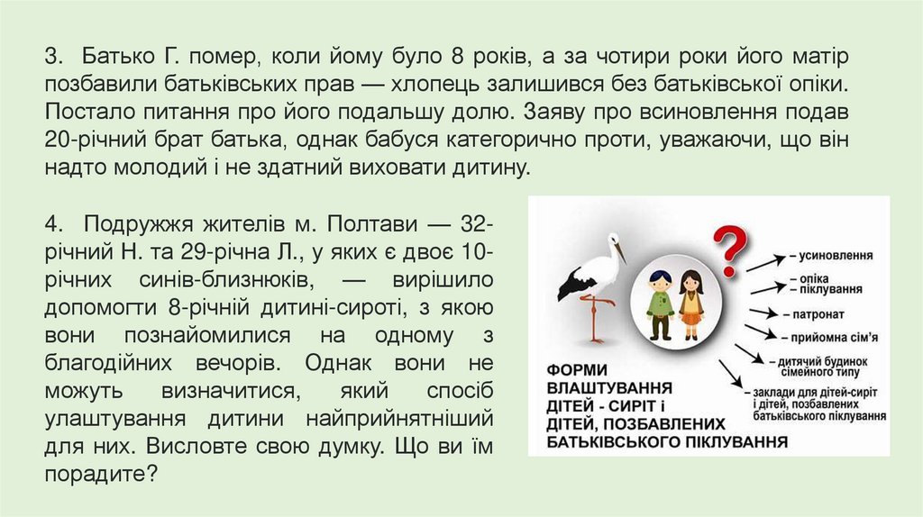 3. Батько Г. помер, коли йому було 8 років, а за чотири роки його матірпозбавили батьківських прав — хлопець залишився без батьківської опіки.