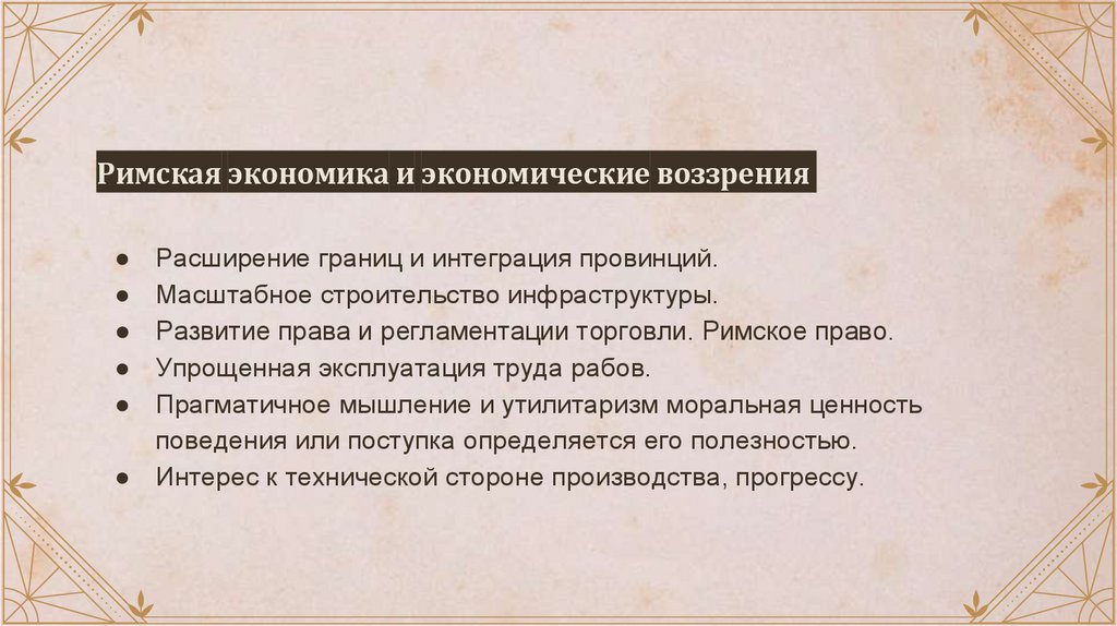 Римская экономика и экономические воззренияРасширение границ и интеграция провинций.