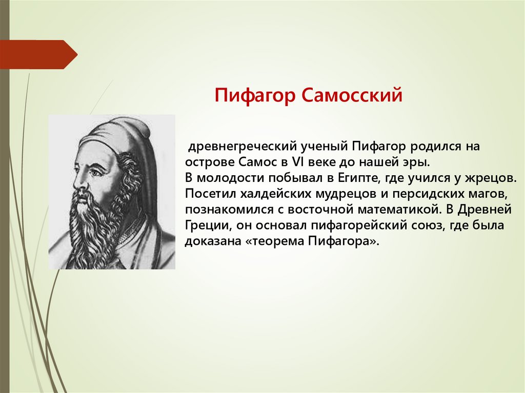 Пифагор Самосскийдревнегреческий ученый Пифагор родился на