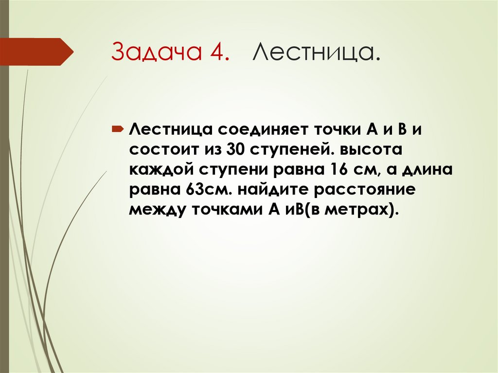 Задача 4. Лестница.Лестница соединяет точки А и В и