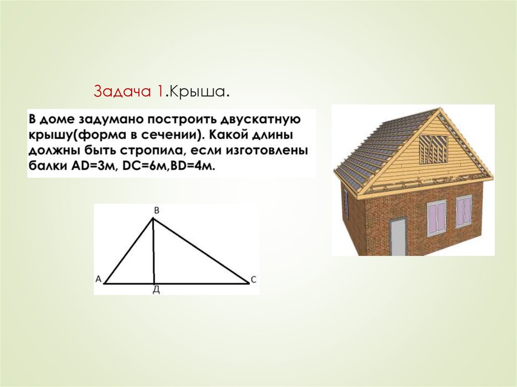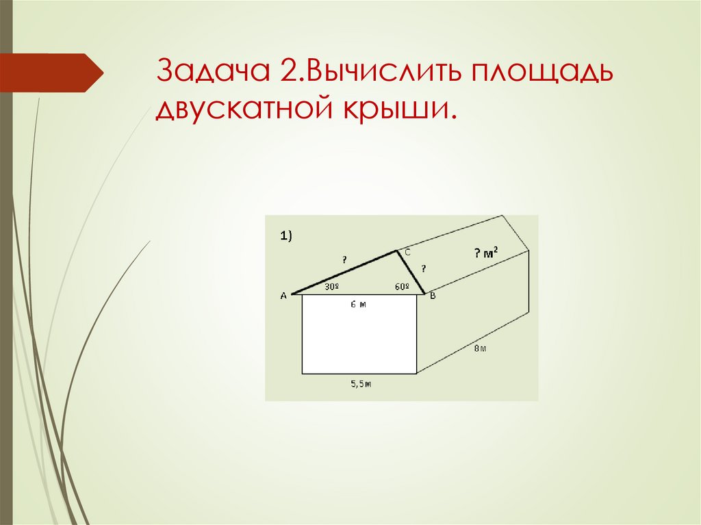 Задача 2.Вычислить площадьдвускатной крыши.