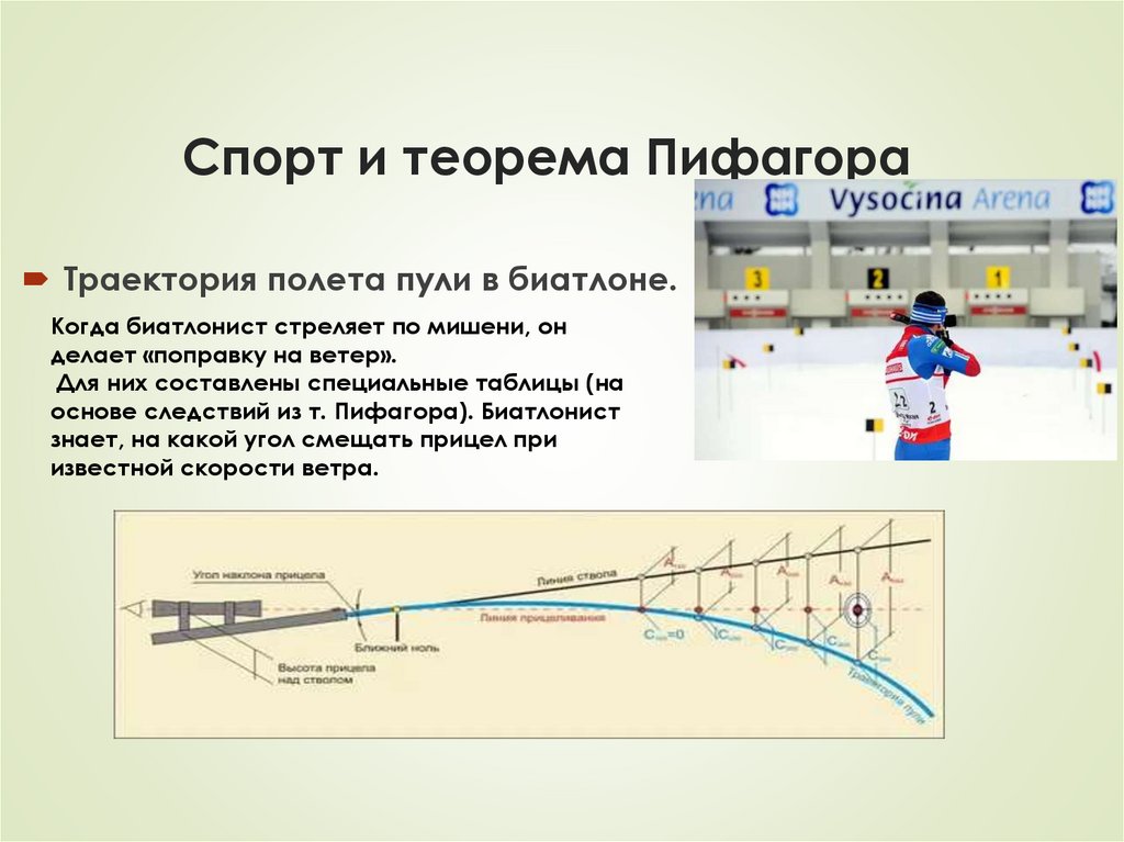 Спорт и теорема ПифагораТраектория полета пули в биатлоне.