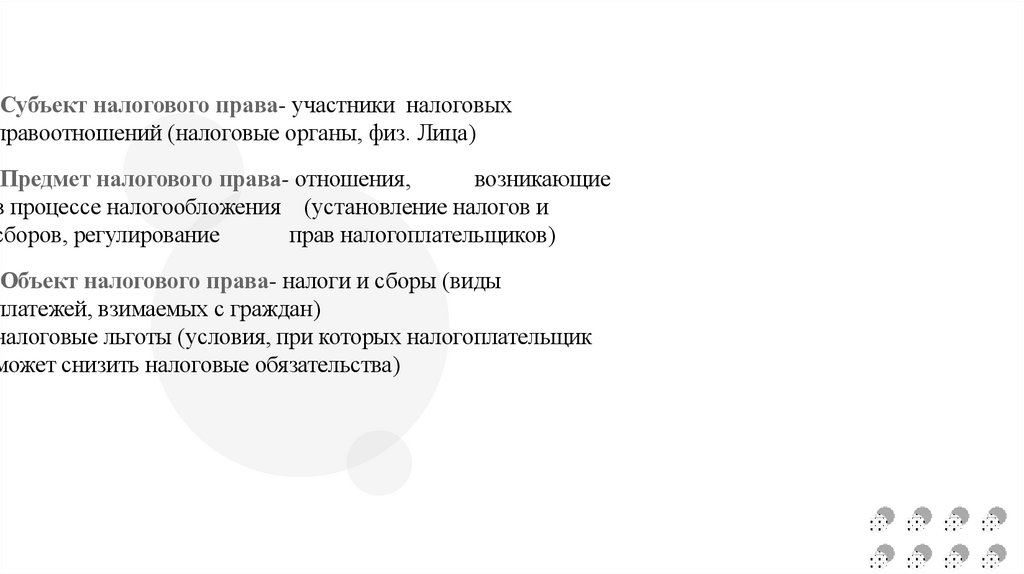 Предмет налогового права- отношения,