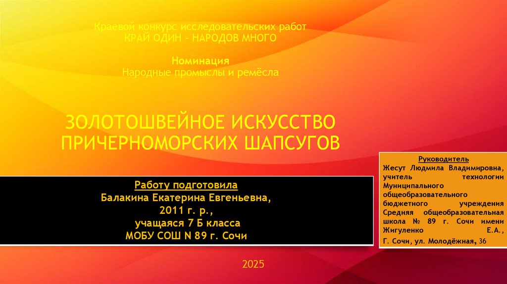 3. Изучить техники золóтной вышивки причерноморских шапсугов.