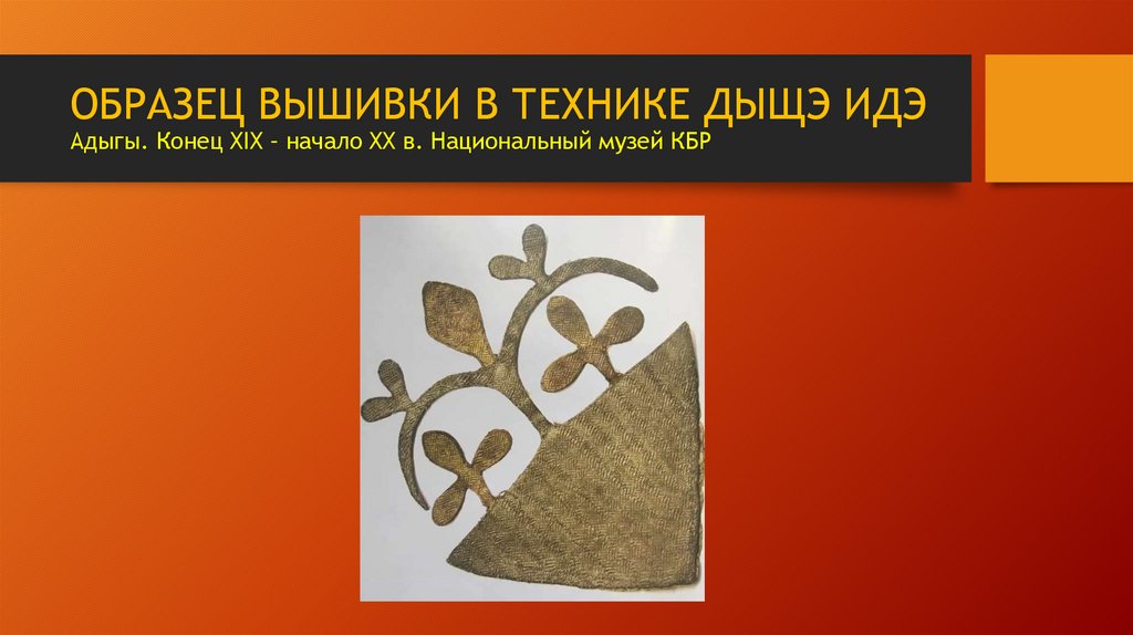 ОБРАЗЕЦ ВЫШИВКИ В ТЕХНИКЕ ДЫЩЭ ИДЭАдыгы. Конец XIX – начало XX в. Национальный музей КБР