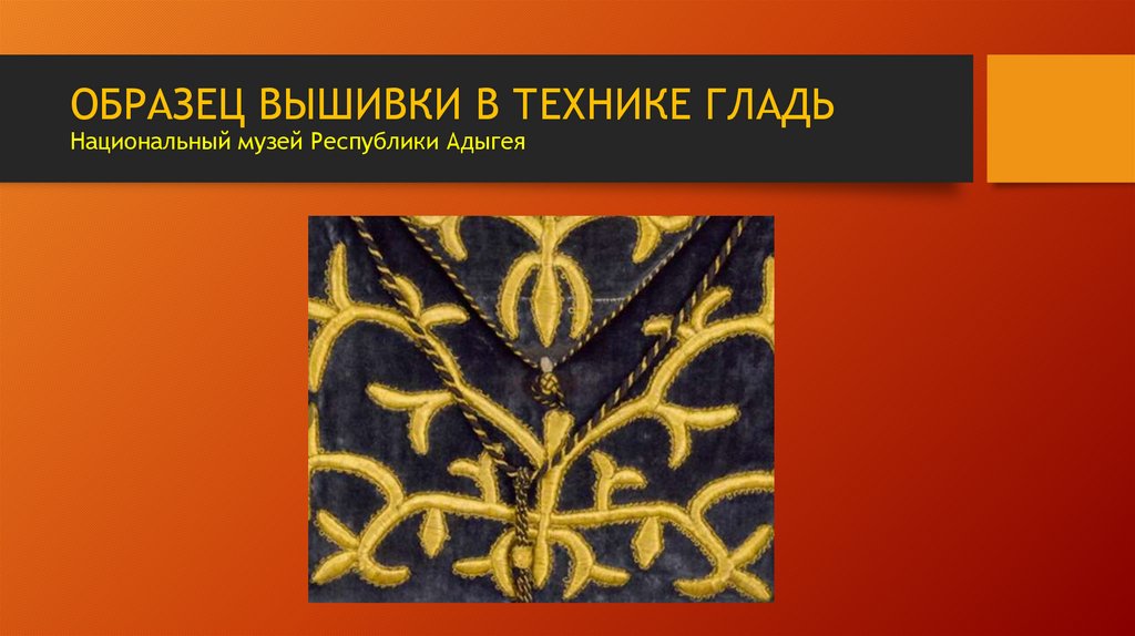 ОБРАЗЕЦ ВЫШИВКИ В ТЕХНИКЕ ГЛАДЬНациональный музей Республики Адыгея