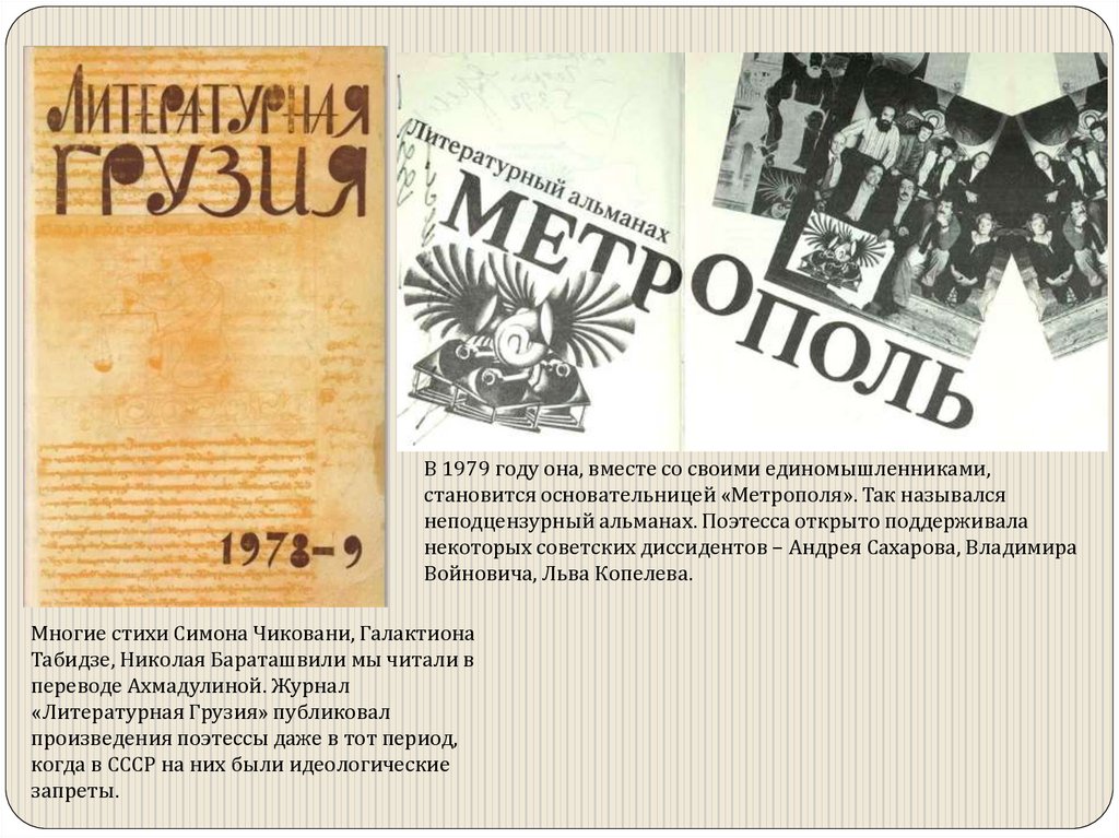 В 1979 году она, вместе со своими единомышленниками,становится основательницей «Метрополя». Так назывался