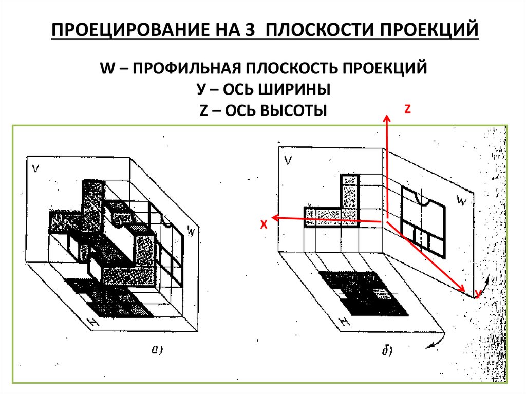 ПРОЕЦИРОВАНИЕ НА 3 ПЛОСКОСТИ ПРОЕКЦИЙW – ПРОФИЛЬНАЯ ПЛОСКОСТЬ ПРОЕКЦИЙ