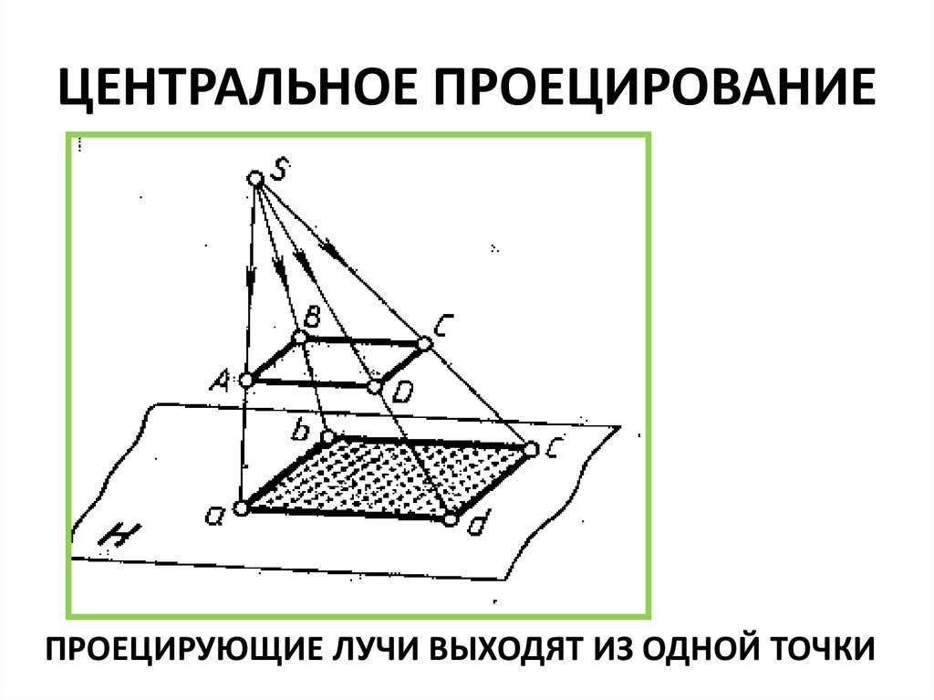 ЦЕНТРАЛЬНОЕ ПРОЕЦИРОВАНИЕПРОЕЦИРУЮЩИЕ ЛУЧИ ВЫХОДЯТ ИЗ ОДНОЙ ТОЧКИ