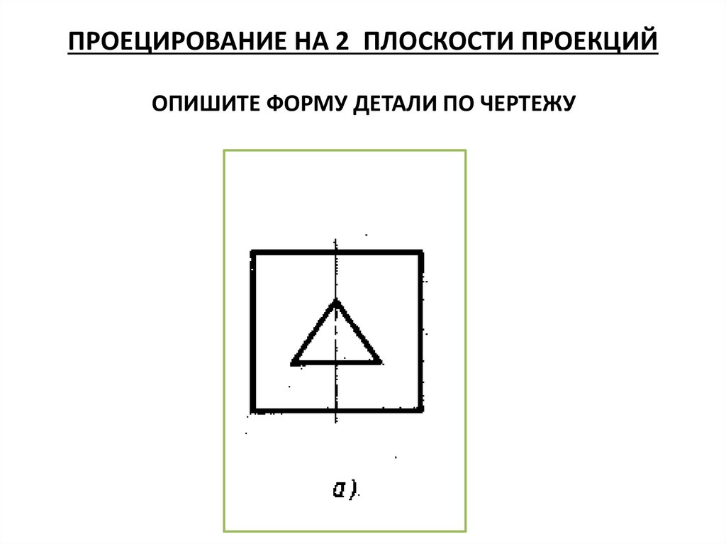 ПРОЕЦИРОВАНИЕ НА 2 ПЛОСКОСТИ ПРОЕКЦИЙОПИШИТЕ ФОРМУ ДЕТАЛИ ПО ЧЕРТЕЖУ