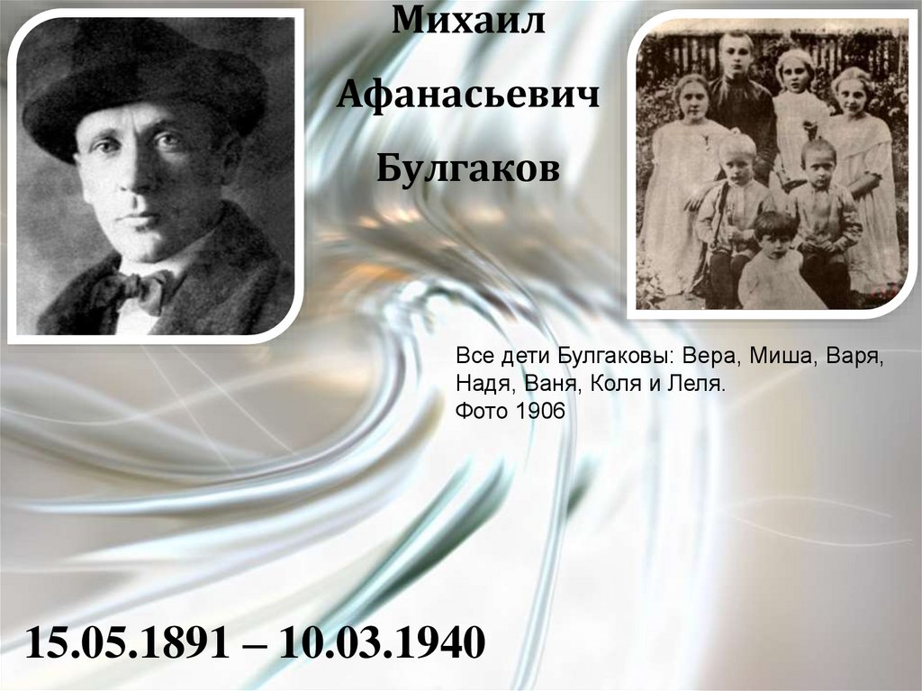 Все дети Булгаковы: Вера, Миша, Варя,Надя, Ваня, Коля и Леля.