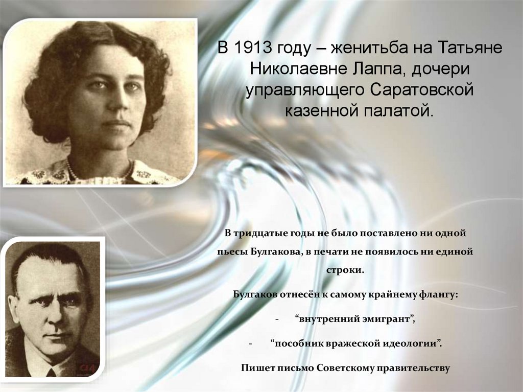 В 1913 году – женитьба на ТатьянеНиколаевне Лаппа, дочери