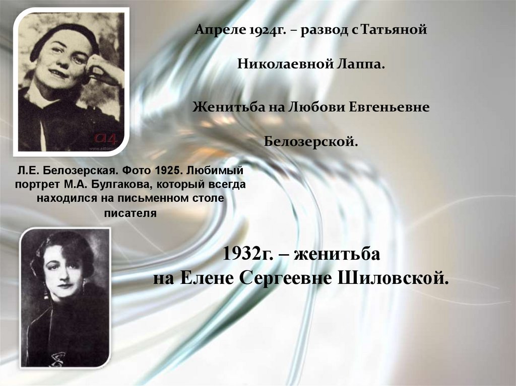 Апреле 1924г. – развод с ТатьянойНиколаевной Лаппа.