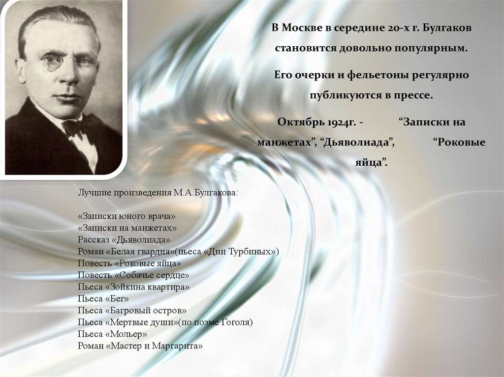 В Москве в середине 20-х г. Булгаковстановится довольно популярным.