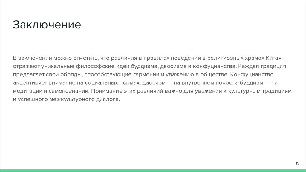 ЗаключениеВ заключении можно отметить, что различия в правилах поведения в религиозных храмах Китая