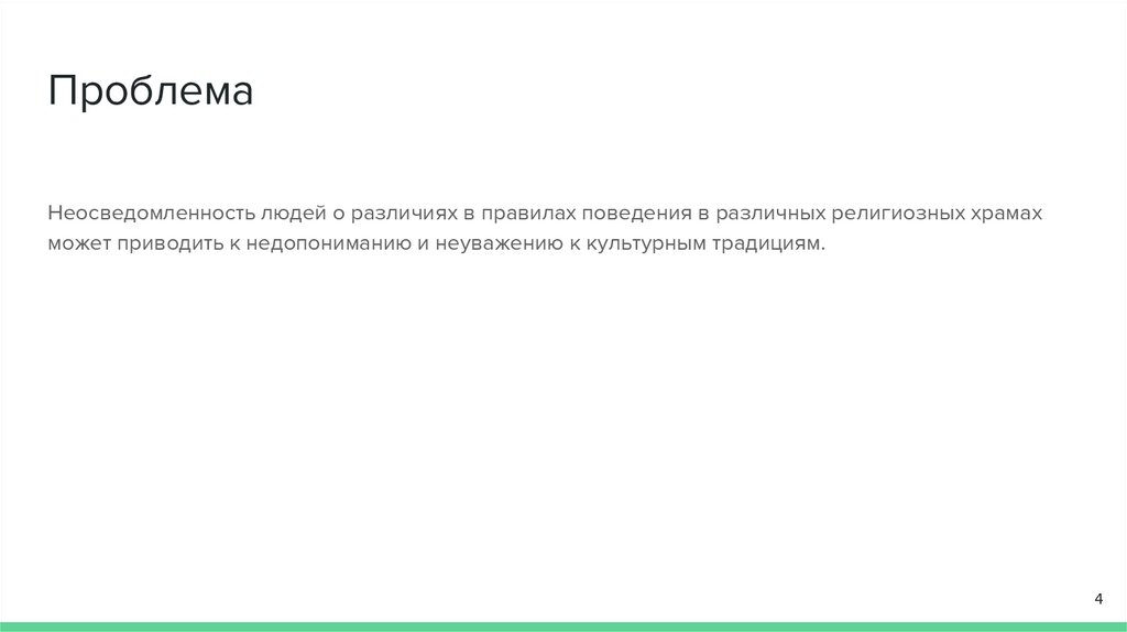 ПроблемаНеосведомленность людей о различиях в правилах поведения в различных религиозных храмах