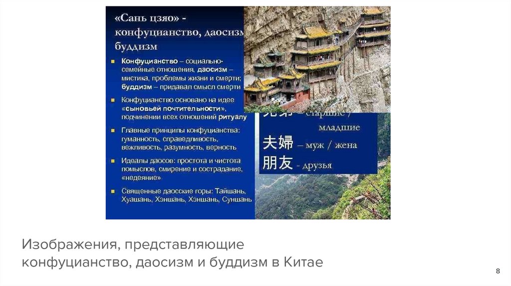 отражают уникальные философские идеи буддизма, даосизма и конфуцианства. Каждая традиция