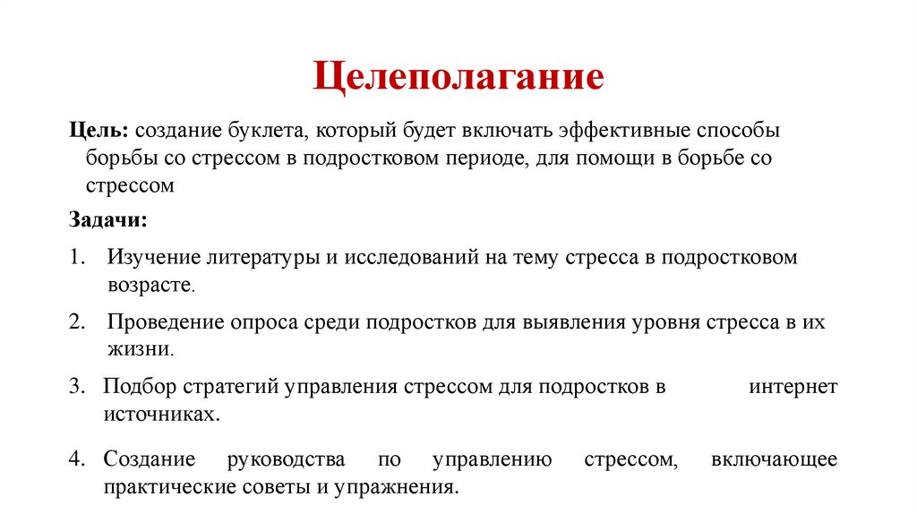 ЦелеполаганиеЦель: создание буклета, который будет включать эффективные способы
