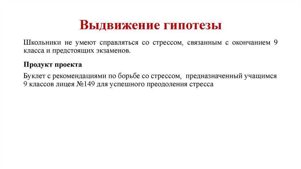 Выдвижение гипотезыШкольники не умеют справляться со стрессом, связанным с окончанием 9