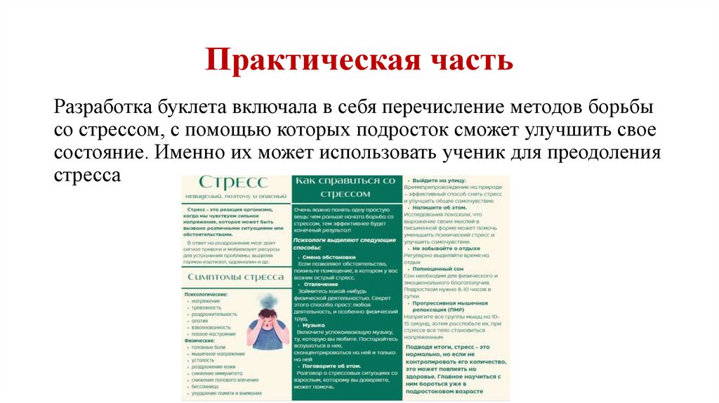 Практическая частьРазработка буклета включала в себя перечисление методов борьбы