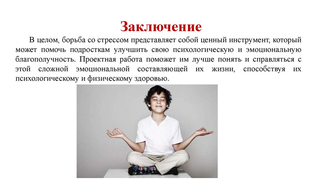 ЗаключениеВ целом, борьба со стрессом представляет собой ценный инструмент, который