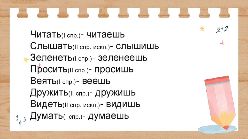 Читать(I спр.)- читаешьСлышать(II спр. искл.)- слышишь