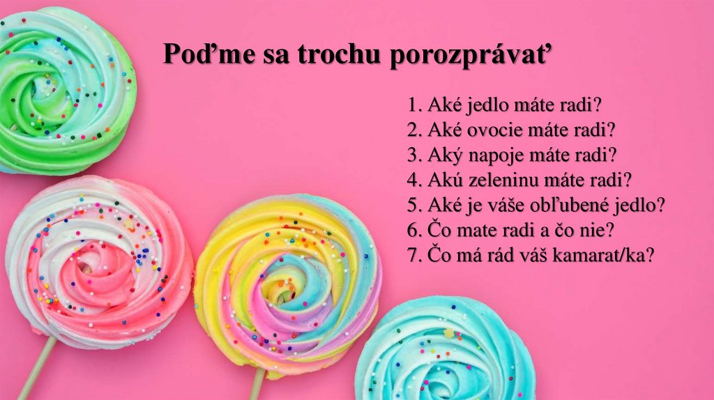 Poďme sa trochu porozprávať1. Aké jedlo máte radi?
