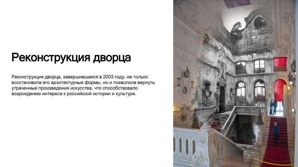 Реконструкция дворцаРеконструкция дворца, завершившаяся в 2003 году, не только