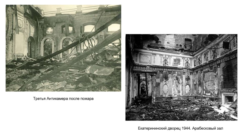 Третья Антикамера после пожараЕкатерининский дворец 1944. Арабесковый зал