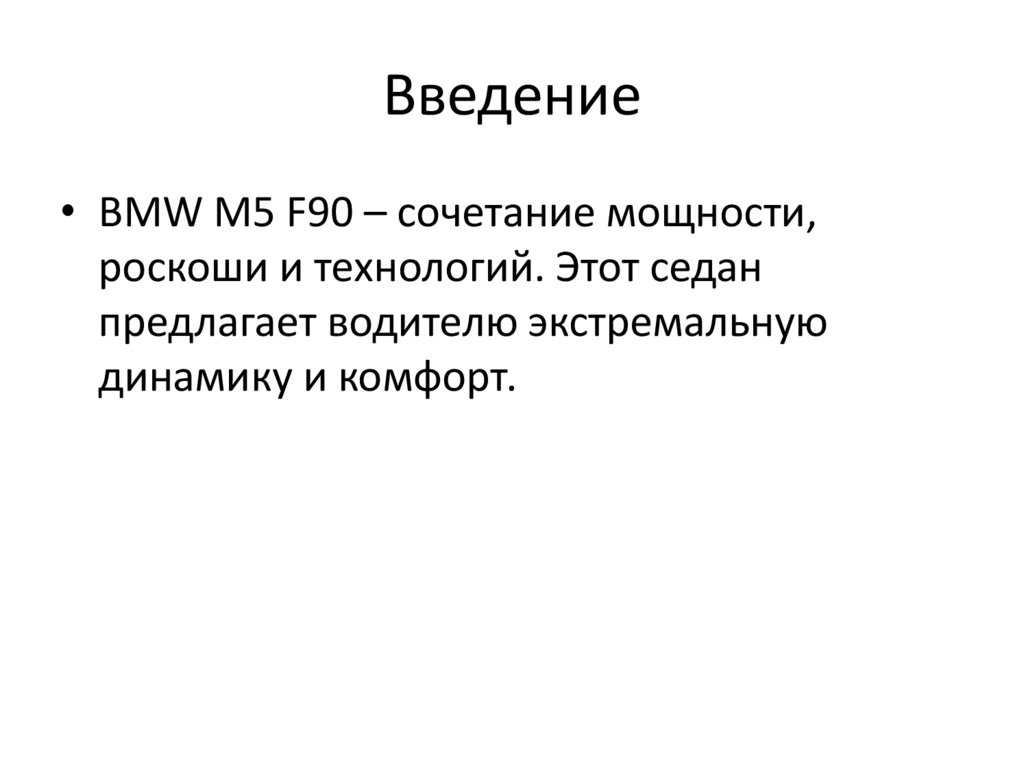 Введение• BMW M5 F90 – сочетание мощности,